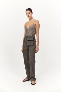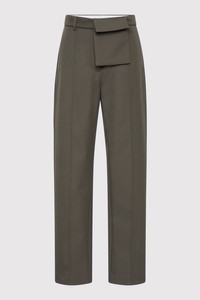 The Utility Pocket Pants are tailored to a slim silhouette and crafted from a soft wool blend. Designed to sit high on the waist, featuring subtle pintuck detailing. Thoughtfully constructed, the Utility Pocket Pants offer a modern interpretation of classic tailoring. Pair with the Relaxed Side Tie Vest for a polished ensemble. DETAILS Materials - 50% RWS Wool - 50% Recycled Polyester - RWS Wool Certificate - Recycled Polyester (GRS) Certificate Garment Details - High-waisted, pintuck detail, front fly closure, belt loops, front slash welt pockets, back pocket flap with button, straight-slim leg, belted pocket detail, unlined Manufacturing - Fairwear Audit - Manufacturer has signed the St. Agni Code of Conduct - Responsibly made in China CARE - Dry clean only - Do not bleach - Do not tumble dry - Iron on low temperature