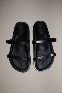The Utility Slide is functional yet refined addition to the warm weather rotation. Designed with two slim leather straps featuring adjustable velcro fastening, the Utility Slide offers ease and flexibility. Completed with a moulded footbed and rubber platform sole to ensure comfort for all-day wear. DETAILS Materials - Upper: 100% Bovine Leather - Insole: 100% Calfskin Leather - Outsole: 100% Rubber - Leather Working Group (LWG) Certified Garment Details - Double velcro strap sandal, leather straps with ring detail, semi sheen leather finish, moulded footbed, rubber platform Manufacturing - SMETA Sedex Ethical Audit - Manufacturer has signed the St. Agni Code of Conduct - R - esponsibly made in China SIZING - Base height: 2.5cm CARE - Clean gently with a soft cloth - Apply leather protector of your choice before wear - Avoid prolonged exposure to water - Allow to air dry, away from direct heat - Store in a cool, dry place in the provided, breathable dust bag - Keep out of direct sunlight and humidity - Use shoe forms or gently stuff with tissue, when storing, to maintain shape - Rotate between shoes, allowing them to rest between wears - Aging is expected and embraced - wear reflects the journey - Following proper care & storage advice, honours their form and extends their life