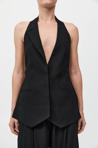A modern interpretation of classic tailoring. The Wool Double Layer Blazer is crafted from a luxurious virgin wool blend and fully lined with 100% Lyocell. Featuring a detachable vest, allowing for layered or standalone styling. Designed with peaked lapels, a single-breasted closure, a back vent and pocket flaps for a refined finish. DETAILS Materials - 51% Viscose / 49% Virgin Wool - Lining: 100% Lyocell Garment Details - Double layer blazer with detachable backless vest, single-breasted, peaked lapels, pocket flaps, back vent, shoulder pads, boxy tailoring - Relaxed fit Manufacturing - SMETA Sedex Ethical Audit - OEKO-TEX Standard 100 Certification - Made responsibly in China CARE - Dry cleaning recommended - Iron on low heat