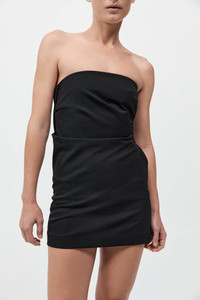 The Wool Drape Mini Dress is crafted from responsibly sourced wool and lined with soft Lyocell Twill. An open back is complemented by a structured drape and back strap detail, balancing boldness with refinement. Designed with a strapless neckline and falling to a mini length, the Wool Drape Mini Dress highlights the form with ease. DETAILS Materials - 96% RWS Wool / 4% Elastane - Lining: 100% Lyocell Twill - RWS Wool Certificate Garment Details - Strapless, structured drape, open back, back strap detail, centre back invisible zip, mini length - Slim fit Manufacturing - Manufacturer has signed the St. Agni Code of Conduct - Fairwear Audit - Responsibly made in China CARE - Dry clean only - Do not bleach - Do not tumble dry