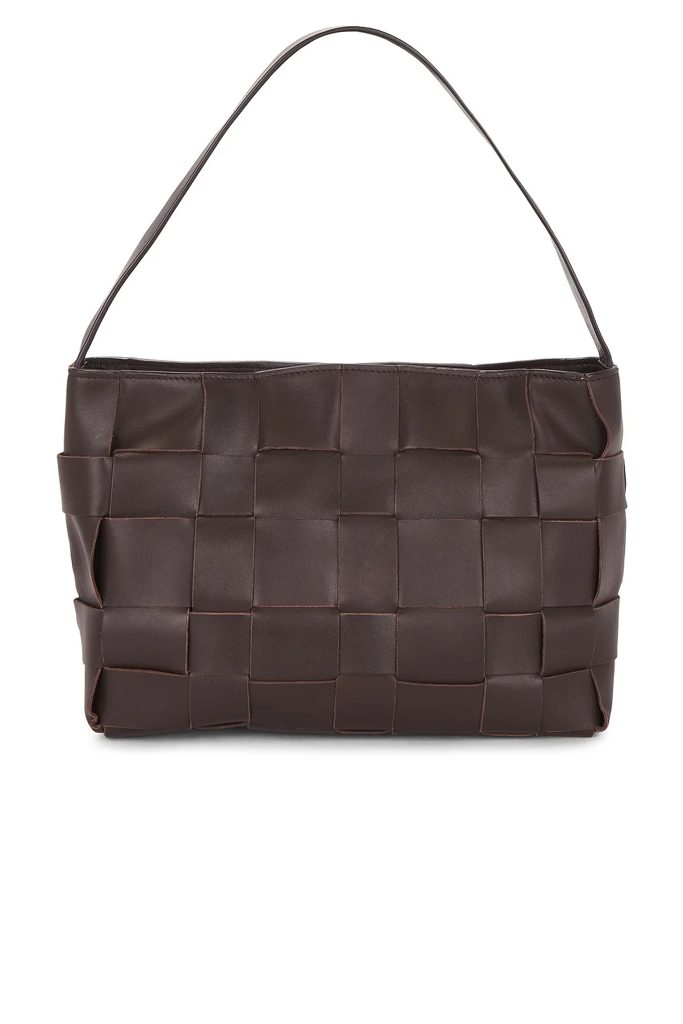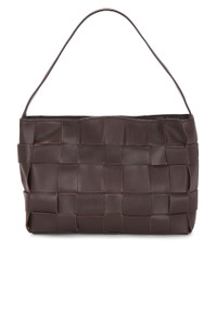 - Woven bovine leather exterior with goat suede lining - Made in India - Top magnetic button closure - One main compartment - Interior slip pocket - Integrated leather shoulder strap - Measures approx 10.5" W x 8" H x 3.5" D Shoulder strap with a 7.25" drop - Revolve Style No. SAGN-WY32 - Manufacturer Style No. R24-013CHL