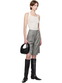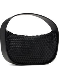 Basket-woven vegetable-tanned buffed leather top handle bag in black. · Certified LWG, SGS, and 8000 Audit · Logo embossed at integrated shoulder strap · Zip closure · Goatskin suede lining · H6"x W9.5" x D2.5" · Total height: H9" Supplier color: Black Leather. Made in India 251193F046004