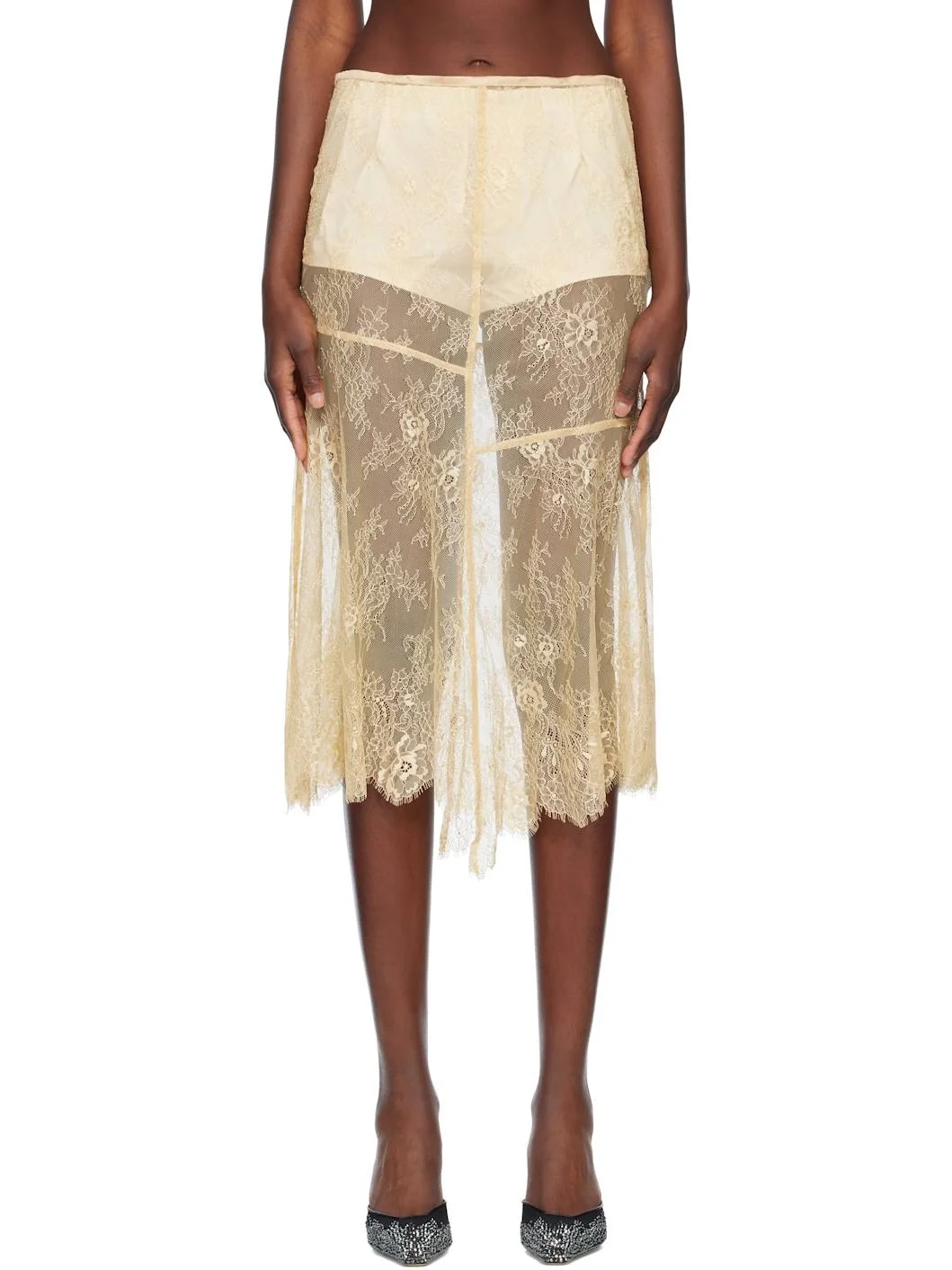 Sheer nylon lace midi skirt. Floral pattern throughout. · Asymmetric paneled construction · Elasticized waistband · Scalloped raw edge at hem · Concealed zip closure at side seam · Unlined Supplier color: Pina colada 100% polyamide. Made in India 251321F092000