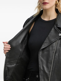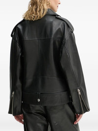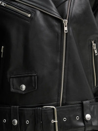 belted zip-front leather jacket
