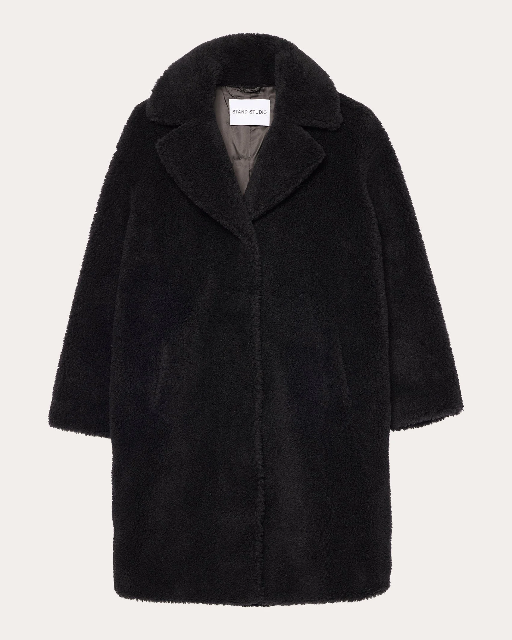 Luxurious warmth that doesn't sacrifice style, Camille is a cocoon-like coat made with a relaxed fit and plush faux-shearling fabric. Notched lapels and a cozy collar add classic appeal to this mid-length layer. Snap closure Relaxed fit Side pockets Self: 76% polyester, 14% wool, 10% acrylic Lining: 100% polyester Dry clean only Made in China Size & Fit High point of shoulder to hem: 38.58in Size FR 32 (US 0): 30.71in chest, 23.62in waist, 33.86in seat Size FR 34 (US 2): 32.28in chest, 25.2in waist, 35.43in seat Size FR 36 (US 4): 33.86in chest, 26.77in waist, 37.01in seat Size FR 38 (US 6): 35.43in chest, 28.35in waist, 38.58in seat Size FR 40 (US 8): 37.01in chest, 29.92in waist, 40.16in seat Size FR 42 (US 10): 38.58in chest, 31.5in waist, 41.73in seat Size FR 44 (US 12): 40.16in chest, 33.07in waist, 43.31in seat Please note, above measurements reflect Stand Studio's size chart, not the actual garment.