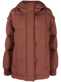 detachable-sleeve padded jacket Highlights - Chocolate brown - Down-feather filling - Padded design - Quilted finish - Classic hood - Funnel neck - Concealed front press-stud fastening - Detachable sleeves - Elasticated cuffs - Two side welt pockets - Straight hem Imported Composition Outer: Polyester 100% Lining: Polyester 100%, Down 90%, Feather 10% SIZE & FIT Model measurements Height 5 ft 11 in(1.8 m) Bust/Chest 31.49 in(80 cm) Hips 35.43 in(90 cm) Waist 24.4 in(62 cm) FittingInformation Designed to be unstructured, offering a loose fit throughout The internal drawstring at the hem allows for fitted preferences Made from a padded non-stretch fabric, giving it no natural elasticity This piece fits true to size – take your usual size Washing instructions Machine Wash