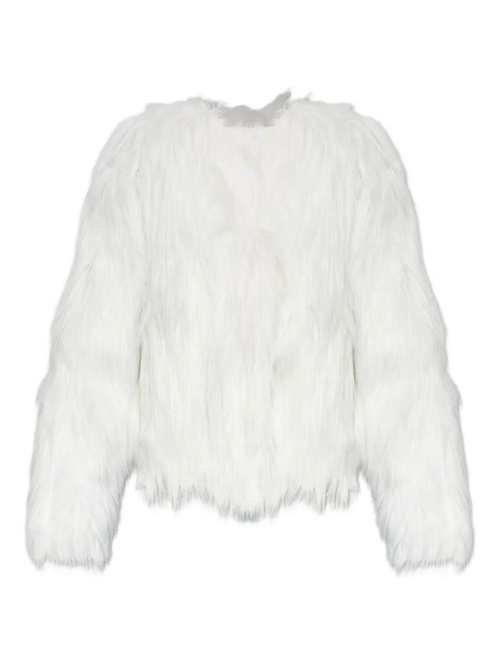 Eilish faux-fur jacket Highlights - White - Faux fur texture - Round neck - Long sleeves - Cropped style - Hook and eye fastening Imported Composition Modacrylic 60%, Acrylic 40% Washing instructions Read Manufacturer Guidelines