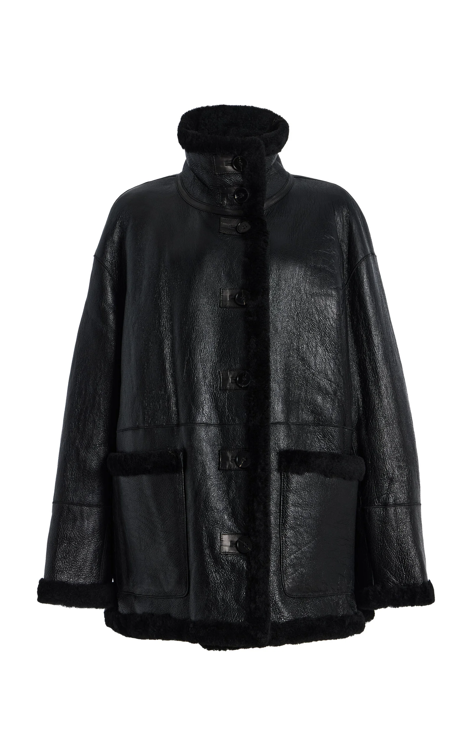 Launched in 2014 by designer Nellie Kamras, Stand Studio filled a void in the market for high-quality leather at an accessible price. Collections have expanded to include cool understated wardrobe staples as well as their innovative outerwear offered in sustainable materials. 'Heather' is an oversized jacket made from supple shearling that reverses to grained leather. PRODUCT DETAILS - Resort '26 - Button fastening - Composition: 100% sheep shearling - Specialist clean - Imported