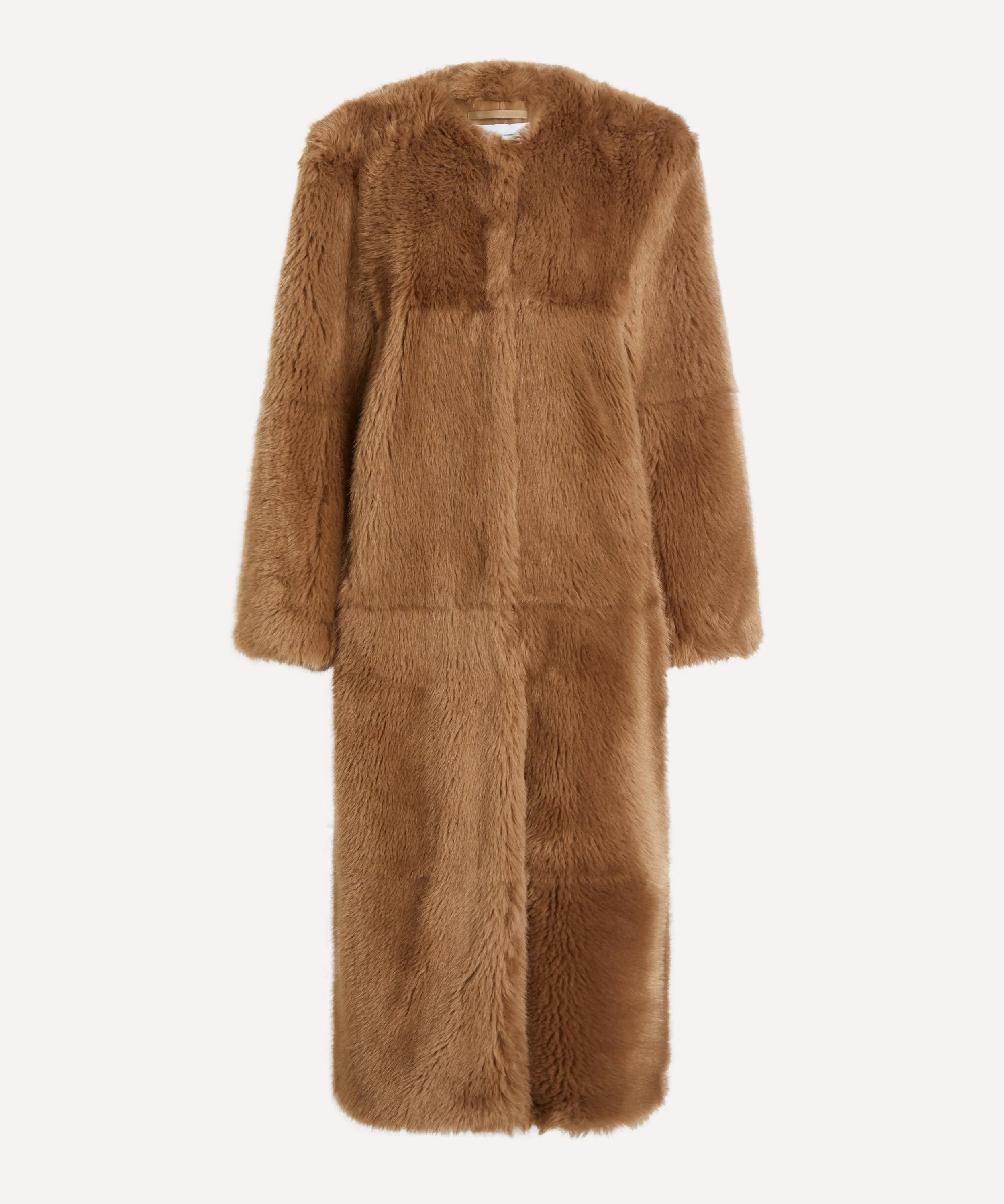 DETAILS Faux-fur coat Straight fit Longline silhouette Round neckline Concealed button placket Side slit pockets SIZE & FIT Model is 175cm/5’9" Chest: 82cm; Waist: 59.5cm; Hip: 86cm and wears a size 8 COMPOSITION & CARE 100% Polyester Dry clean only
