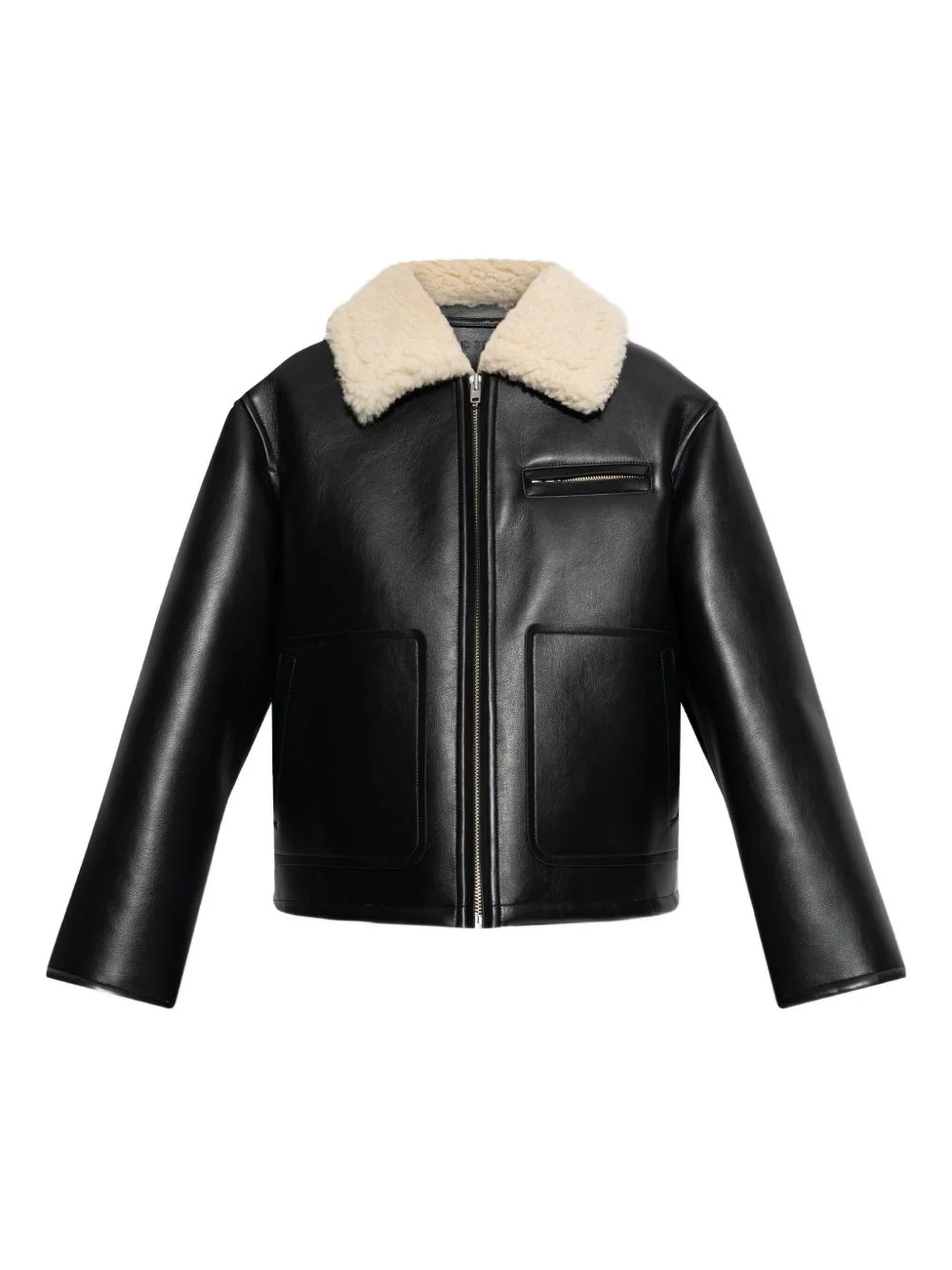 Kaz shearling-collar pocket jacket Highlights - Black - Shearling collar - Zip fastening - Chest pocket - Front pockets - Long sleeves Imported Composition Polyester 60%, Polyurethane 40% Washing instructions Read Manufacturer Guidelines