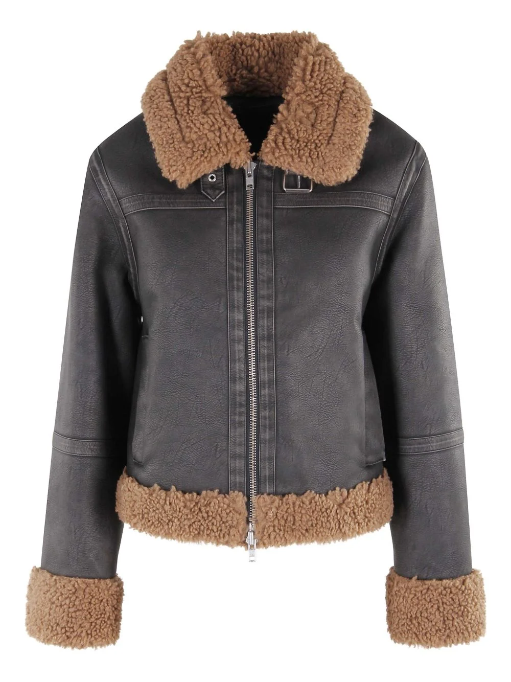 Lorelle faux-shearling jacket Highlights - Dark brown - Faux-shearling collar - Long sleeve - Zip fastening - Buckle detail Imported Composition Polyester 100% Washing instructions Dry Clean Only
