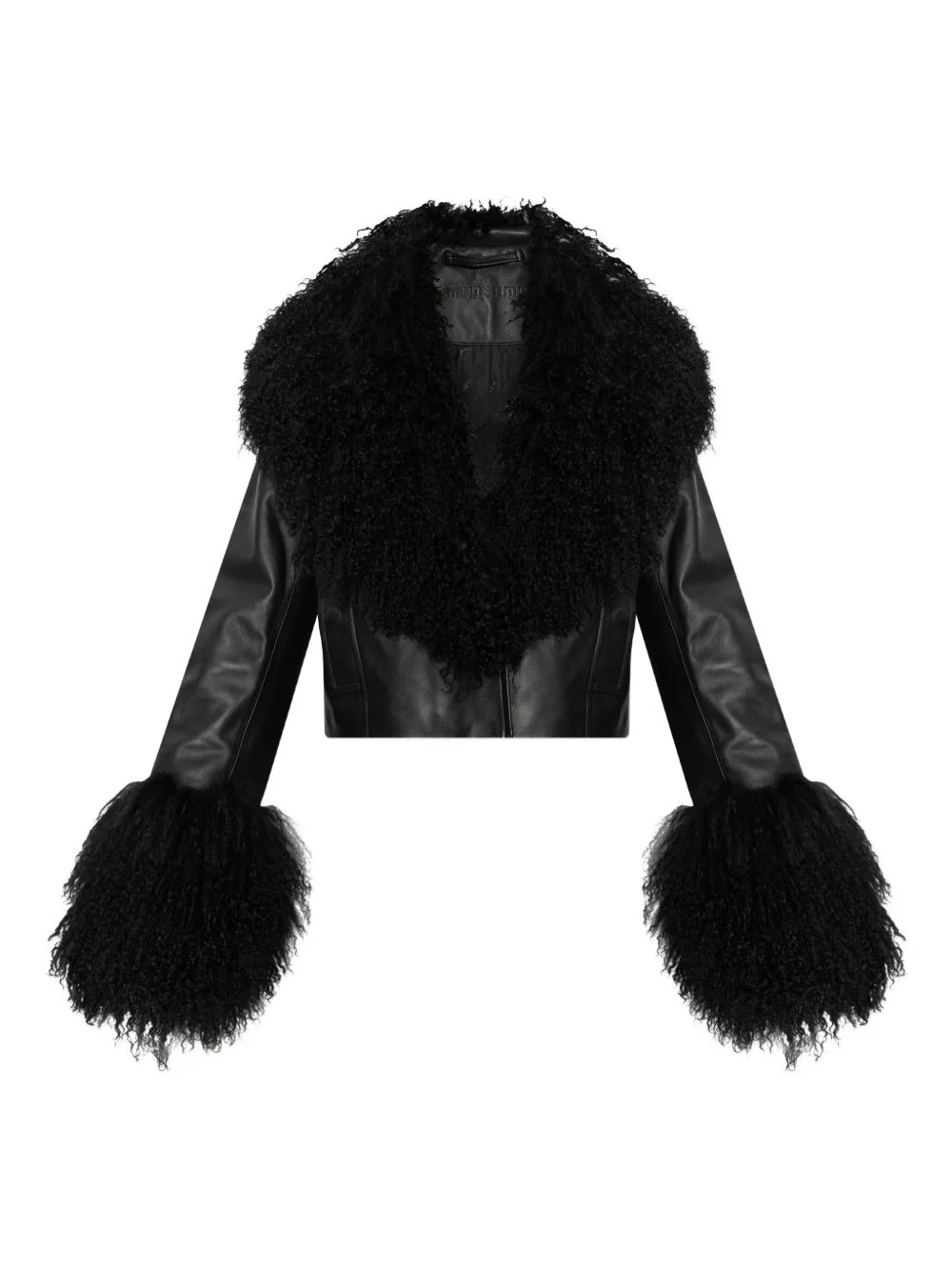 Mim black jacket Highlights - Black - Fur trim - Long sleeves - Cropped style Imported Composition Lamb Skin 100%, Mongolian Fur 100% Washing instructions Specialist Cleaning
