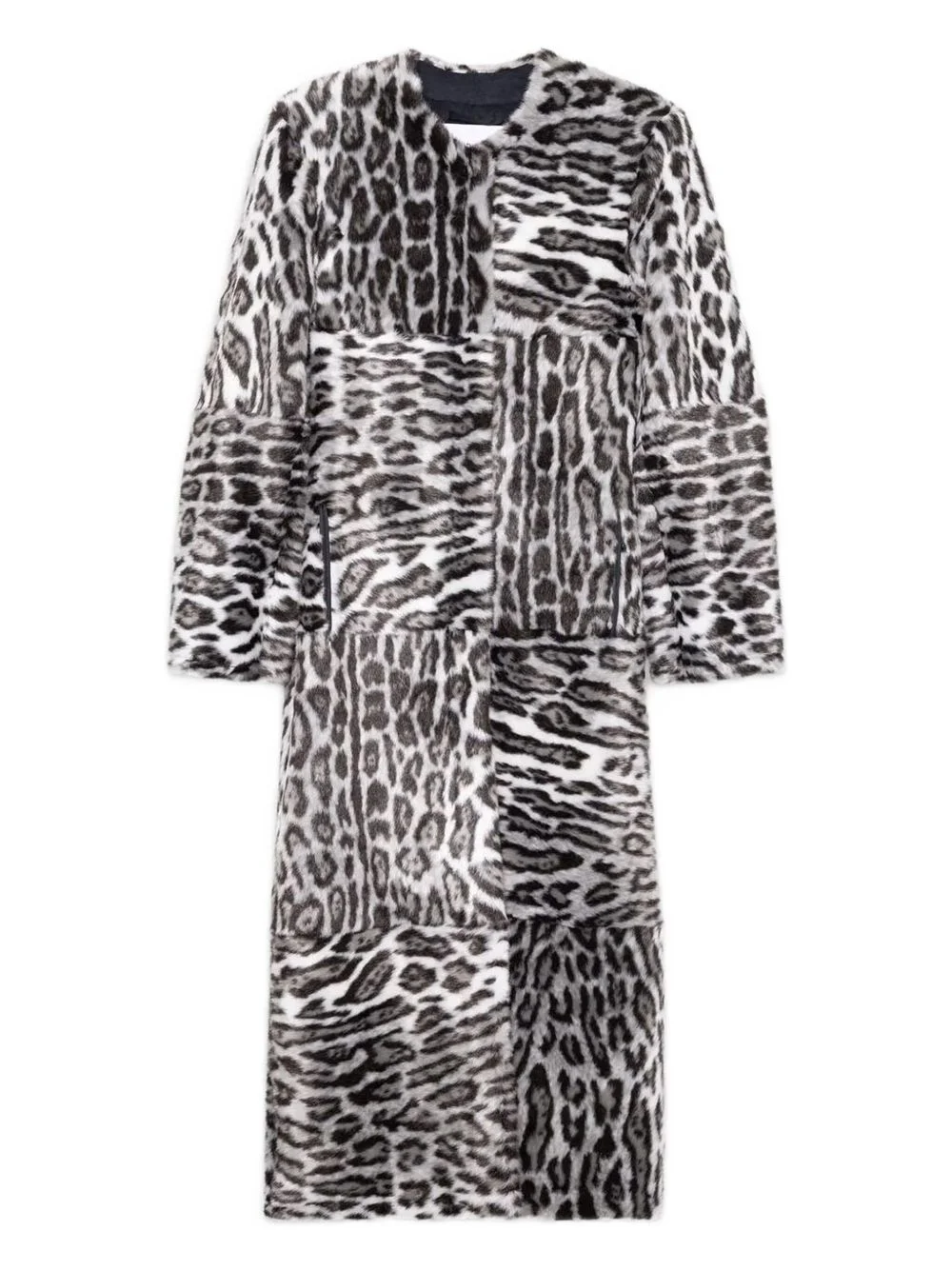 patchwork animal coat Highlights - Animal - Patchwork design - Round neck - Long sleeves - Concealed closure Imported Composition Modacrylic 50%, Polyester 50%