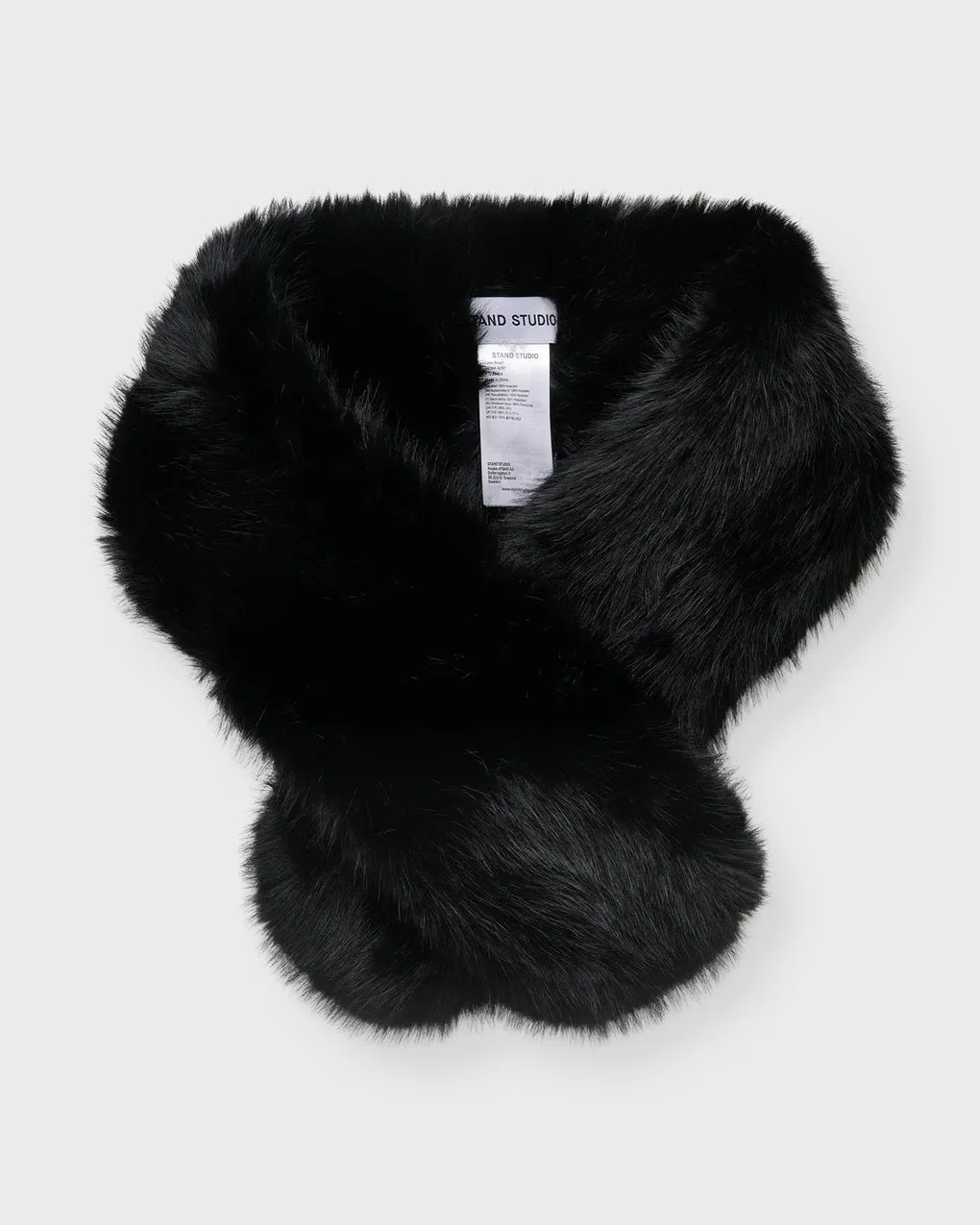 Scarf Lone from Stand Studio. The Lone scarf is a double-sided faux fur design with rounded corners and a slit closure for easy fastening. A soft, cozy accessory that adds warmth and texture to any winter look. Specification - Article number - ID: 178117-000 - Brand: Stand Studio - Color: Black - Washing Instructions: Dry clean - Made of: 100% Polyester - Color: Black