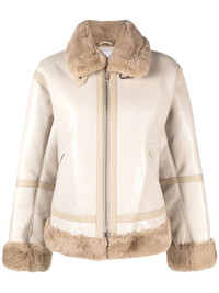 shearling-trim zip-fastening coat Stand Studio's focus on materials and minimalist design is showcased in this zip-fastening jacket from the SS22 collection. Featuring a monochromatic palette and shearling trim, the garment has a contemporary yet timeless feel. Imported Composition Outer: Polyester 55%, Polyurethane 45% Lining: Polyester 100% SIZE & FIT Model measurements Height 5 ft 10 in(1.79 m) Bust/Chest 31.1 in(79 cm) Hips 35.03 in(89 cm) Waist 24.01 in(61 cm) FittingInformation This piece fits true to size. We recommend you get your regular size Cut for a loose fit Made with a mid-weight non-stretch fabric Washing instructions Dry Clean Only