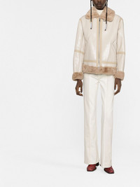shearling-trim zip-fastening coat