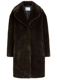 Info & Care Stand Studio faux fur;coat Leopard print, notched lapels, dropped shoulders, side slip pockets, internal zip-fastening pocket, fully lined Concealed press-stud fastenings through front 100% polyester; lining: 55% polyester, 45% viscose Dry clean Size & Fit Length shoulder to hem: 37.5 inches/ 95cm Midweight Relaxed fit Model is 5'10"/ 178cm and wears a size;FR36