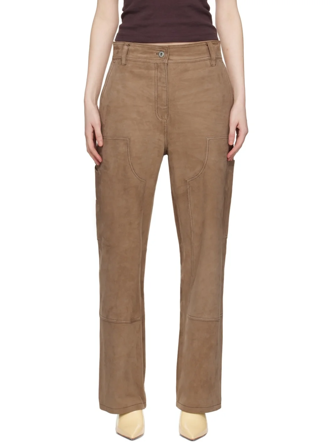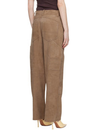 Goatskin suede pants. · Paneled construction · Belt loops · Four-pocket styling · Zip-fly · Patch pocket at outseams · Partial stretch satin lining Supplier color: Sandstone beige Body: 100% goat leather. Lining: 96% polyester, 4% elastane. Made in India 241321F084002