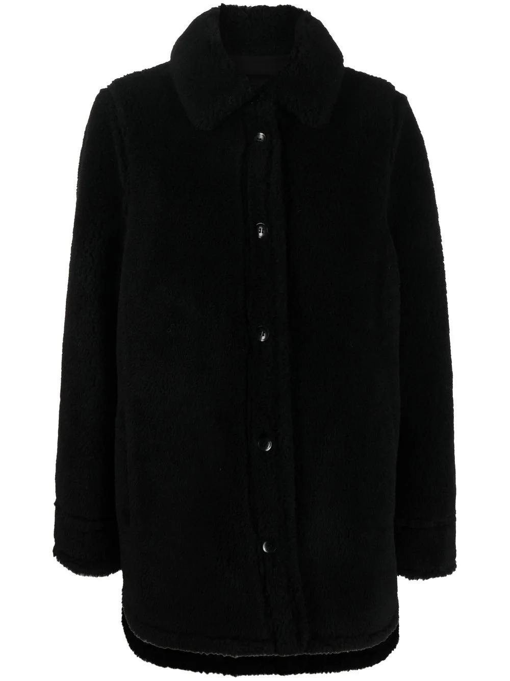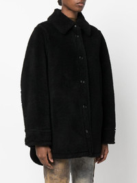Vernon single-breasted wool coat black wool textured finish oversized pointed collar asymmetric front button fastening two side slit pockets unlined rear curved hem Imported Composition Wool 100%, Viscose 60%, Nylon 30%, Spandex/Elastane 10% SIZE & FIT Model measurements Height 5 ft 10 in(1.78 m) Bust/Chest 31.49 in(80 cm) Hips 37 in(94 cm) Waist 23.62 in(60 cm) FittingInformation This piece fits true to size. We recommend you get your regular size Cut for a loose fit Made with a mid-weight fabric Washing instructions Dry Clean Only