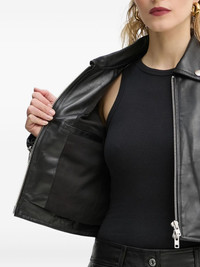 zip-fastening popper-detail jacket Highlights Imported Composition Lining: Polyester 85%, Viscose 15% Outer: Calf Leather 100%