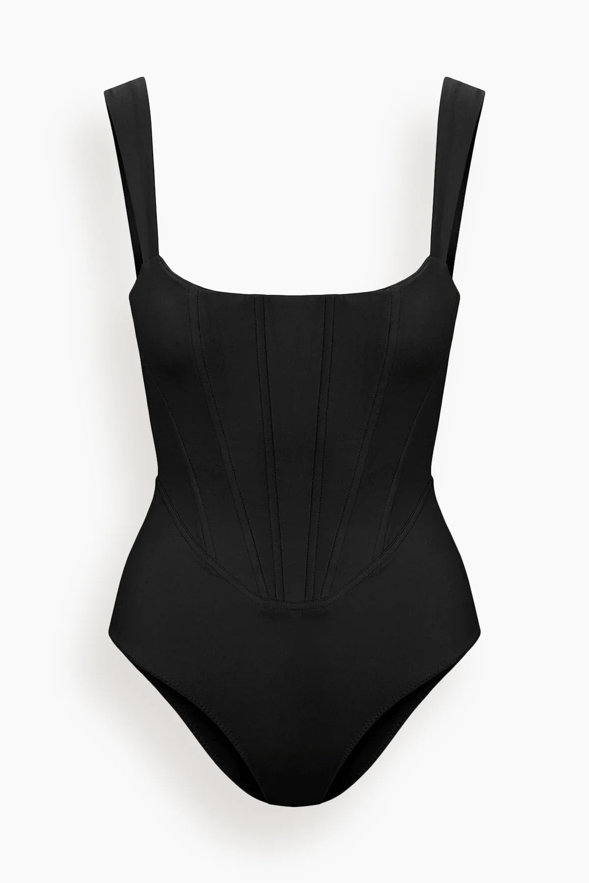 The Staud Adelaide One Piece is perfect for a day by the beach or pool. This one piece swimsuit features a corset bodice with boning and moderate coverage. FIT DETAILS - One piece swimsuit - Corset bodice - Boning - Wide straps - Moderate coverage - 67% Recycled Polyester, 33% Spandex