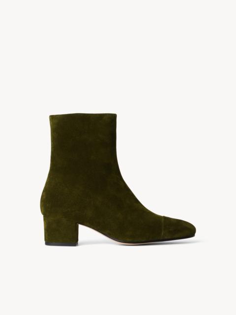 The Aimee is a round-toe suede ankle bootie featuring a block heel and side zipper. MORE DETAILS - Suede Short Boot - Fits true to size - Upper: Self: 100% Cow Leather; Sole: 75% Cow Leather, 25% ABS - Heel Height: 50mm, Shaft Height: 6.75", Calf Opening: 10.5"