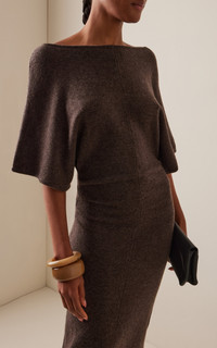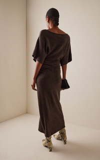 Sarah Staudinger and George Augusto co-founded the LA-based brand upon the idea that fashion shouldn't just empower women — it should be accessible, too. The Amelie is a midi length dress with a boat neckline and dolman sleeves. It features a center back slit and ruching at the waist creates a gentle drape. PRODUCT DETAILS - Resort '26 - Slip on - Composition: 51% wool, 49% nylon - Designer color: Canyon - Dry clean - Imported