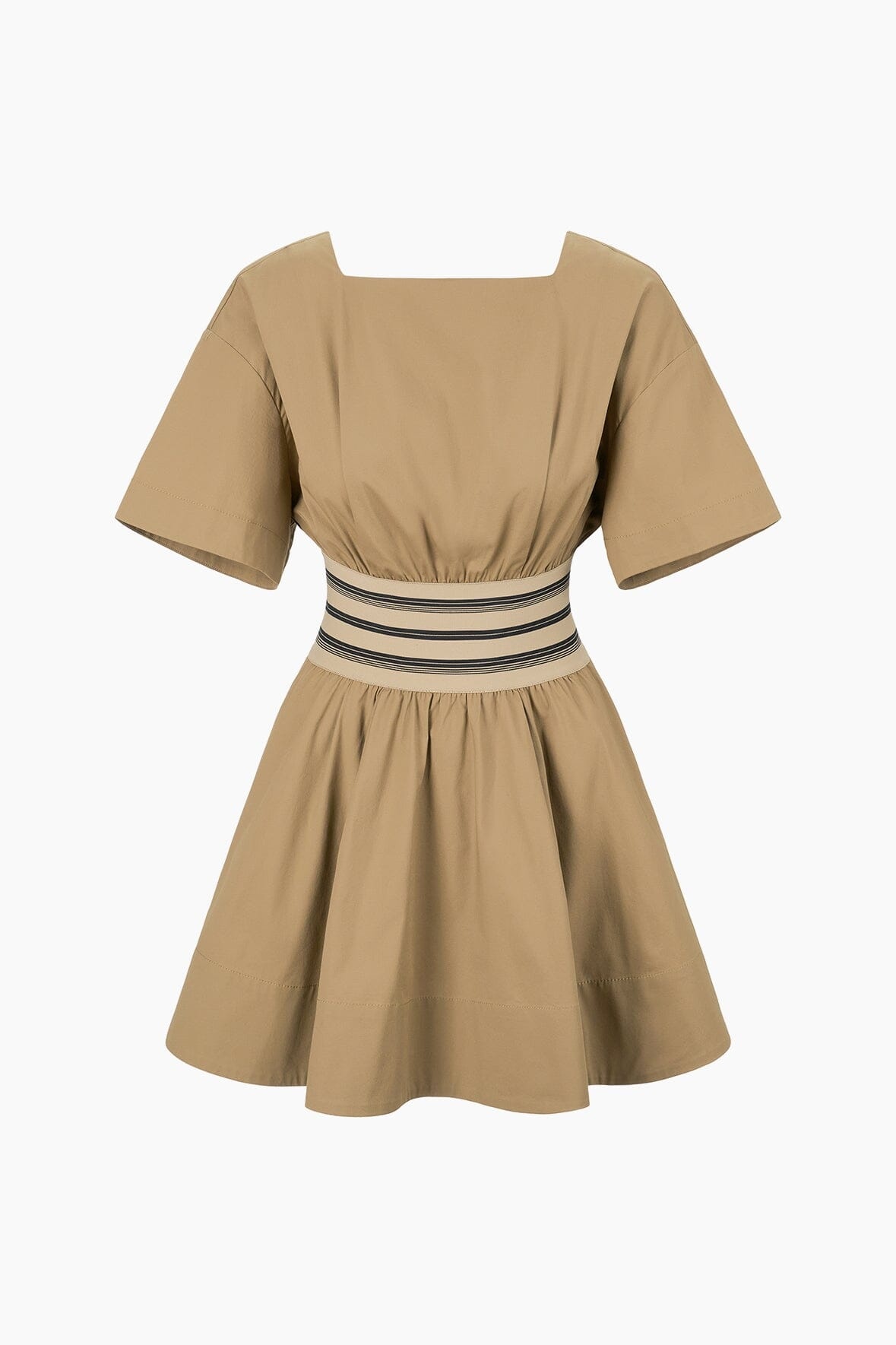 A structured mini dress made from our slightly stretchy cotton poplin fabric. The Mini Amy features a square neckline, wide neck and contrast stripe elastic waistband. MORE DETAILS - 98% Cotton, 2% Spandex - Model is 5'10 and wearing a size S - Dry Clean Only