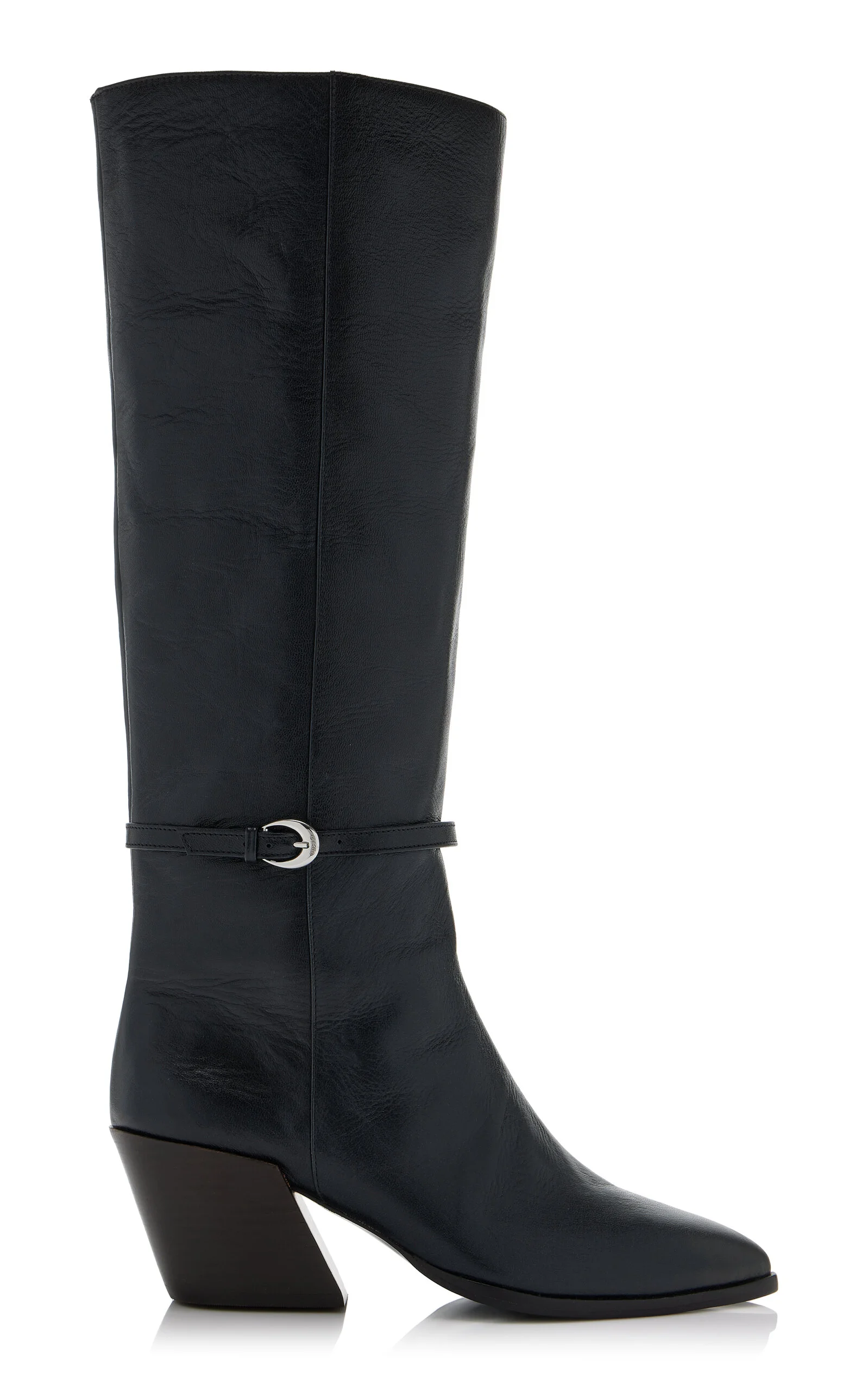 Sarah Staudinger and George Augusto co-founded the LA-based brand upon the idea that fashion shouldn't just empower women — it should be accessible, too. Made from soft leather, the 'Austen' boot has a pointed-toe silhouette with a buckled shaft and slanted heel. PRODUCT DETAILS - Pull on - Composition: 100% sheep leather; Sole: 66% calf leather, 34% ABS - Imported