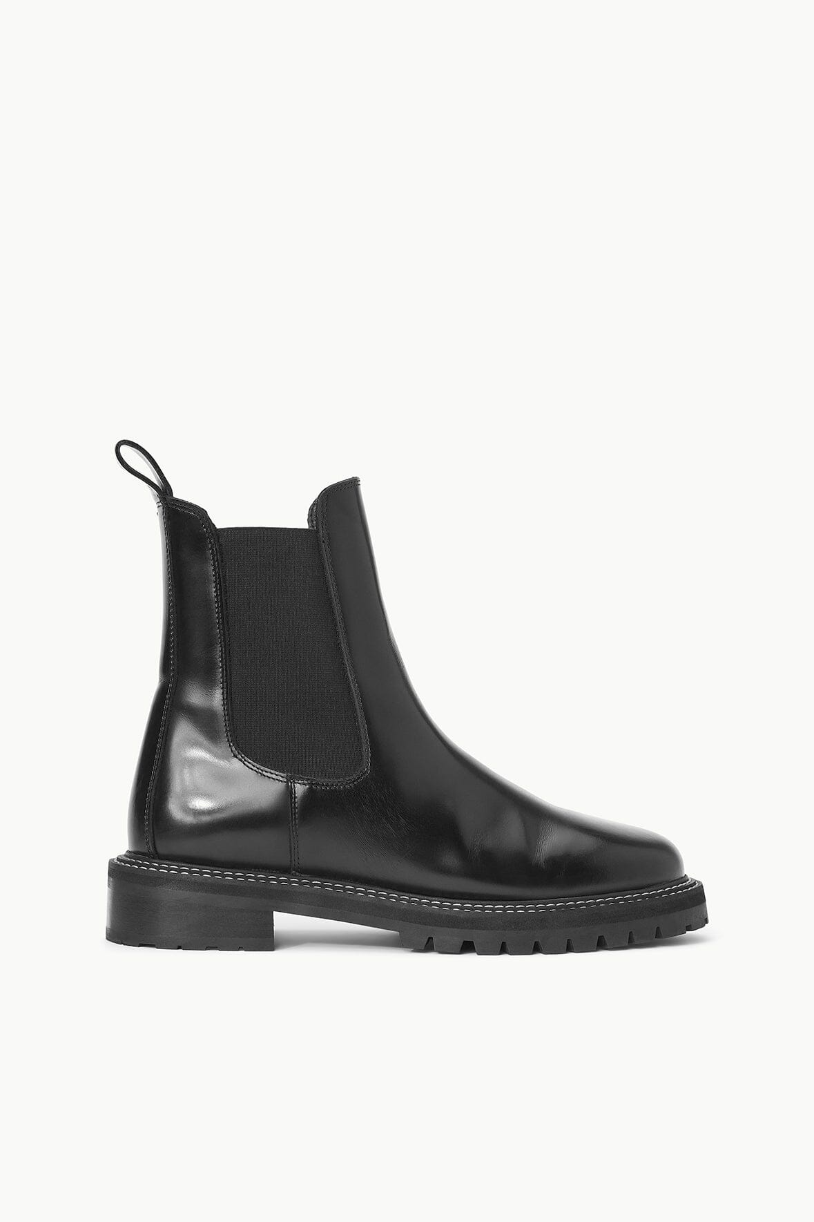 The Dutch Boot is an update to a classic Chelsea boot, crafted in a high shine polished leather and a lug sole. MORE DETAILS - Ankle boot in Black - If between sizes, consider sizing up - Upper: 100% Cow Leather Sole: 100% Rubber - Heel Height: 40mm / 1.5 in. Shaft: 175mm / 6.8 in. Calf Opening: 250mm / 9.8in