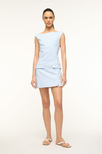 The Walker Dress is a boatneck mini dress with cap sleeves and flap pockets. It features subtle box pleats and a center back hidden zipper. MORE DETAILS - 71% Rayon 26% Polyester 3% Spandex - Model is 5'10 and wearing a size Small - Dry clean only