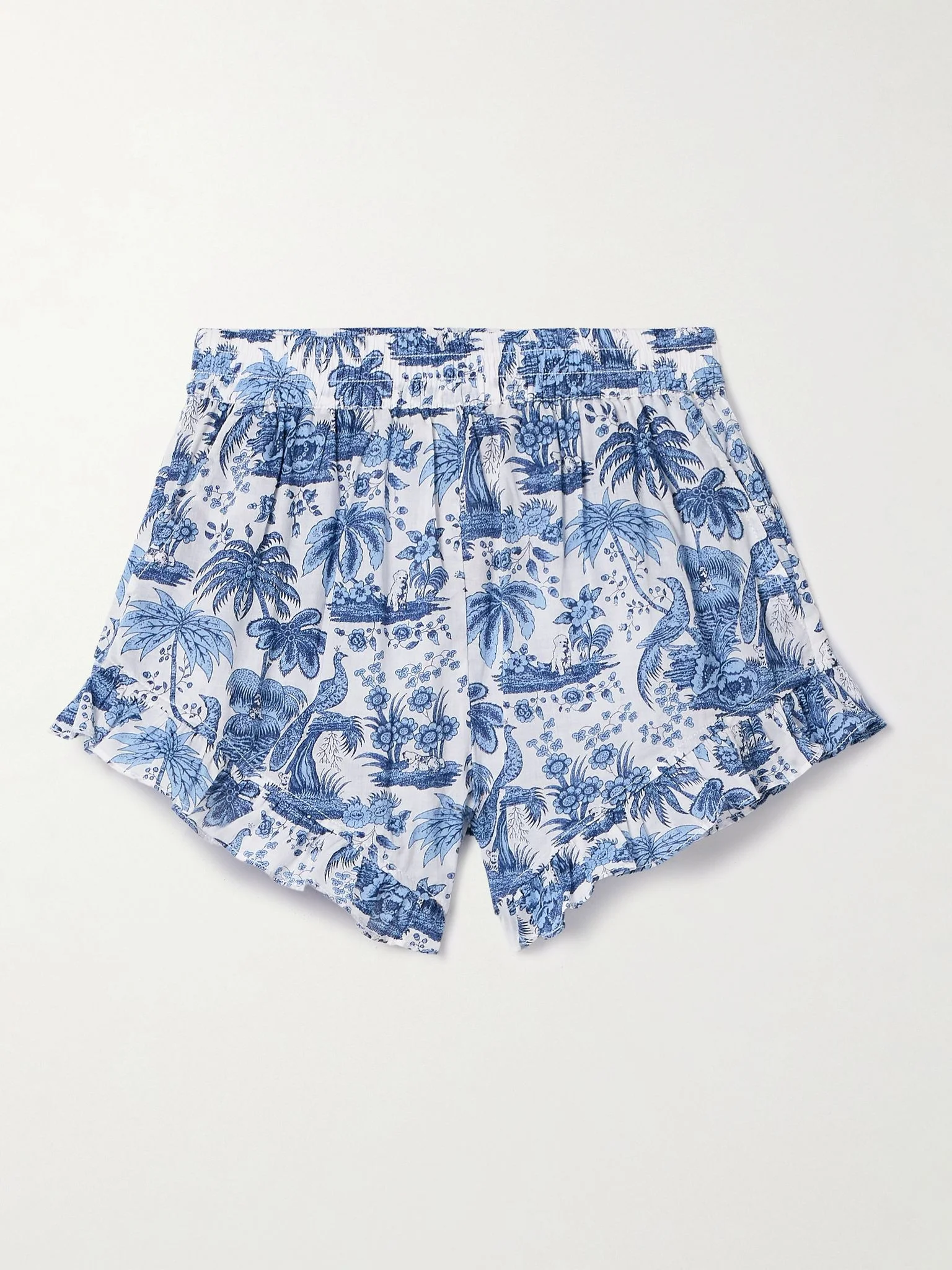 STAUD's 'Boyana' shorts are meant to be worn with the matching shirt in our edit - they'll work just as well with a white tank or tee, too. Made from lightweight cotton-voile, they're printed with a French-inspired 'toile' motif and have a lightly gathered elasticated waistband and ruffled cuffs. Size & Fit - Fits true to size, take your normal size - Mid-rise, cut for a loose fit - Elasticated at the waist for a flexible fit - Lightweight, non-stretchy fabric - Model is 177cm/ 5'10" and is wearing a size XSmall Model measurements: - Bust: 79cm/ 31” - Waist: 61cm/ 24” - Hip: 89cm/ 35” Details & Care - Blue and white cotton-voile - Pull on - 100% cotton - Machine wash