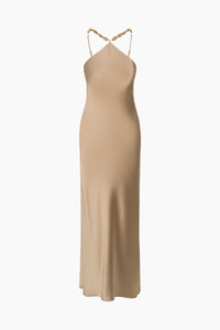 The Cadence Dress is one of our best-selling evening dress silhouettes, featuring a halter neckline with beaded straps. The dress is crafted in satin and has a hidden back zipper. MORE DETAILS - 76% Acetate, 24% Polyester - Model is 5'10 and wearing a size 4 - Dry Clean Only