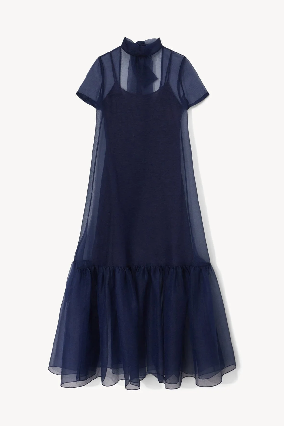 The Calluna Dress is a high neck organza gown with scoop back and functional neck tie. This style features a tiered skirt ruffle hem. MORE DETAILS - 100% Polyester; Lining: 100% Cotton - Model is 5'11" and wearing a size Small - Dry Clean Only