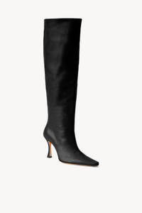 An updated high heel boot in rich bold leather. Th e Cami can be dressed up for night or worn casually during daytime. MORE DETAILS - Leather Boot - Fits True To Size - Upper: 100% Goat Leather; Sole: 95% Leather, 5% ABS - Heel Height: 100mm, Shaft Height: 18", Calf Opening: 16.25"