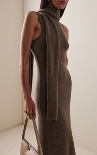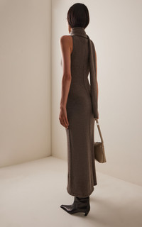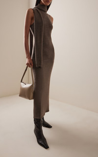 Canal Scarf-Neck Wool Midi Dress brown