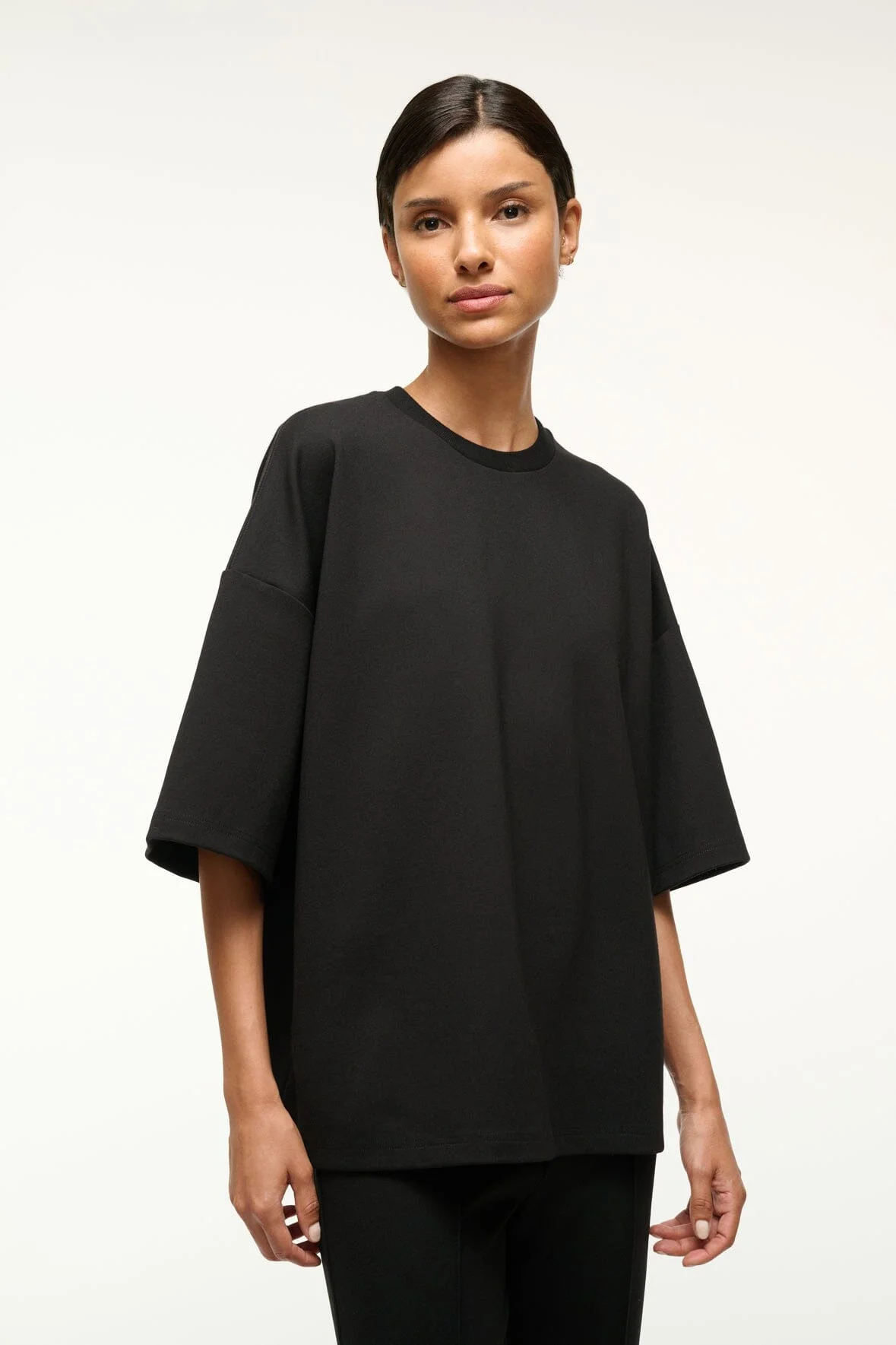 An oversized crewneck shirt in our ponte fabric with a rib neck trim. The Capsule Top is a perfect travel day essential when paired with our Knack Pant. MORE DETAILS - 68% RAYON 27% NYLON 5% SPANDEX - Model is 5'10" and wearing a size XS/Small - Dry Clean Only