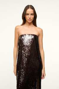 Our best-selling Casey Dress has been reimagined for the season; crafted in shiny sequins, this strapless gown features a relaxed silhouette throughout the body, a back slit, and a hidden zipper. MORE DETAILS - 88% Nylon 12% Spandex - Model is 5'11" and wearing a size 2 - Dry Clean Only