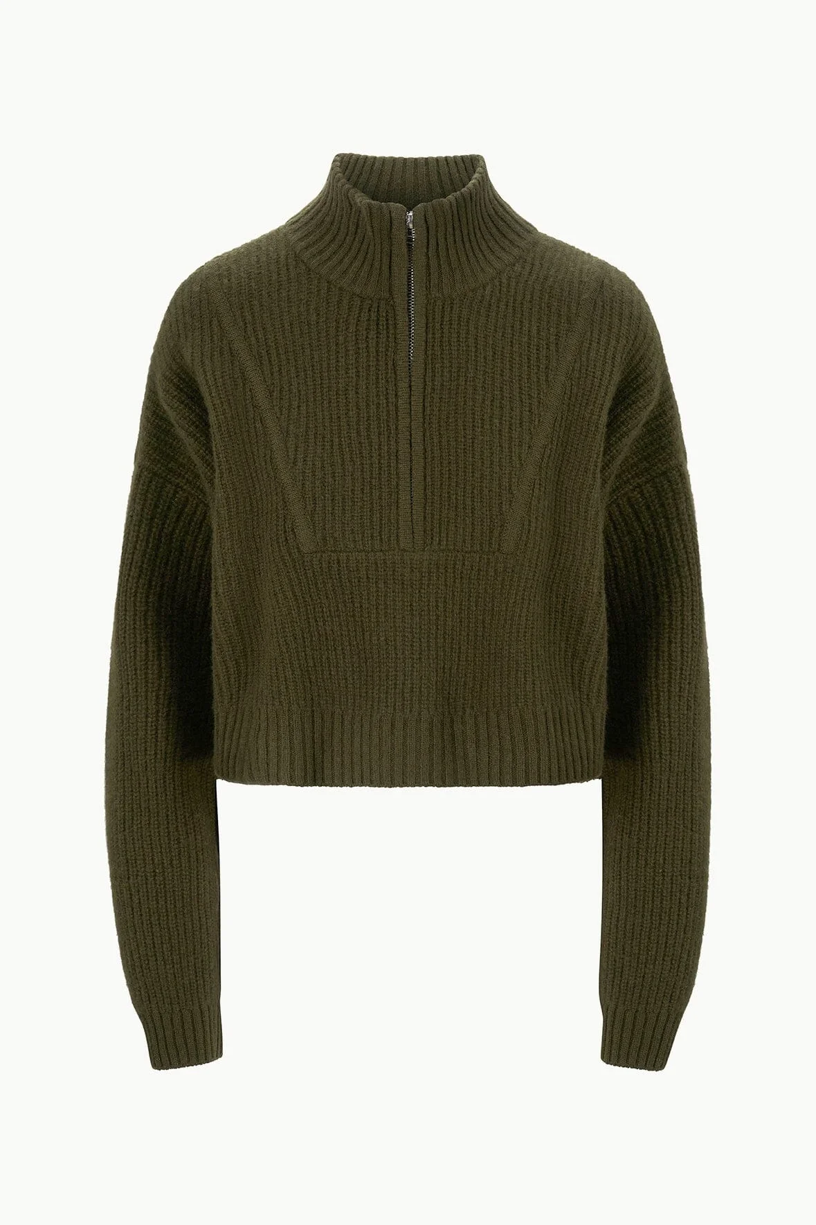 STAUD CASHMERE CROPPED HAMPTON SWEATER OLIVE