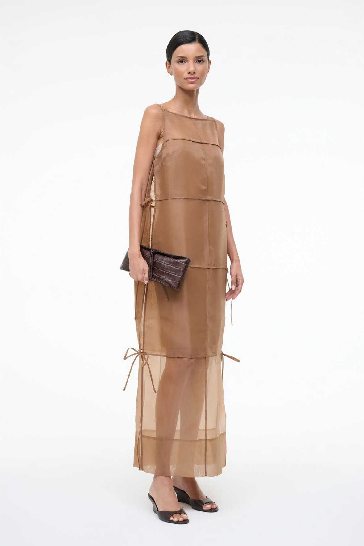 A sheer, panelled dress crafted from floaty organza, the Chandler features self-tie side details and a square neckline. This versatile style can be worn as a long sheer tunic or as a statement dress, and includes a removable strapless slip for additional coverage. MORE DETAILS - 100% Polyester - Model is 5'10 and wearing a size S - Dry Clean Only
