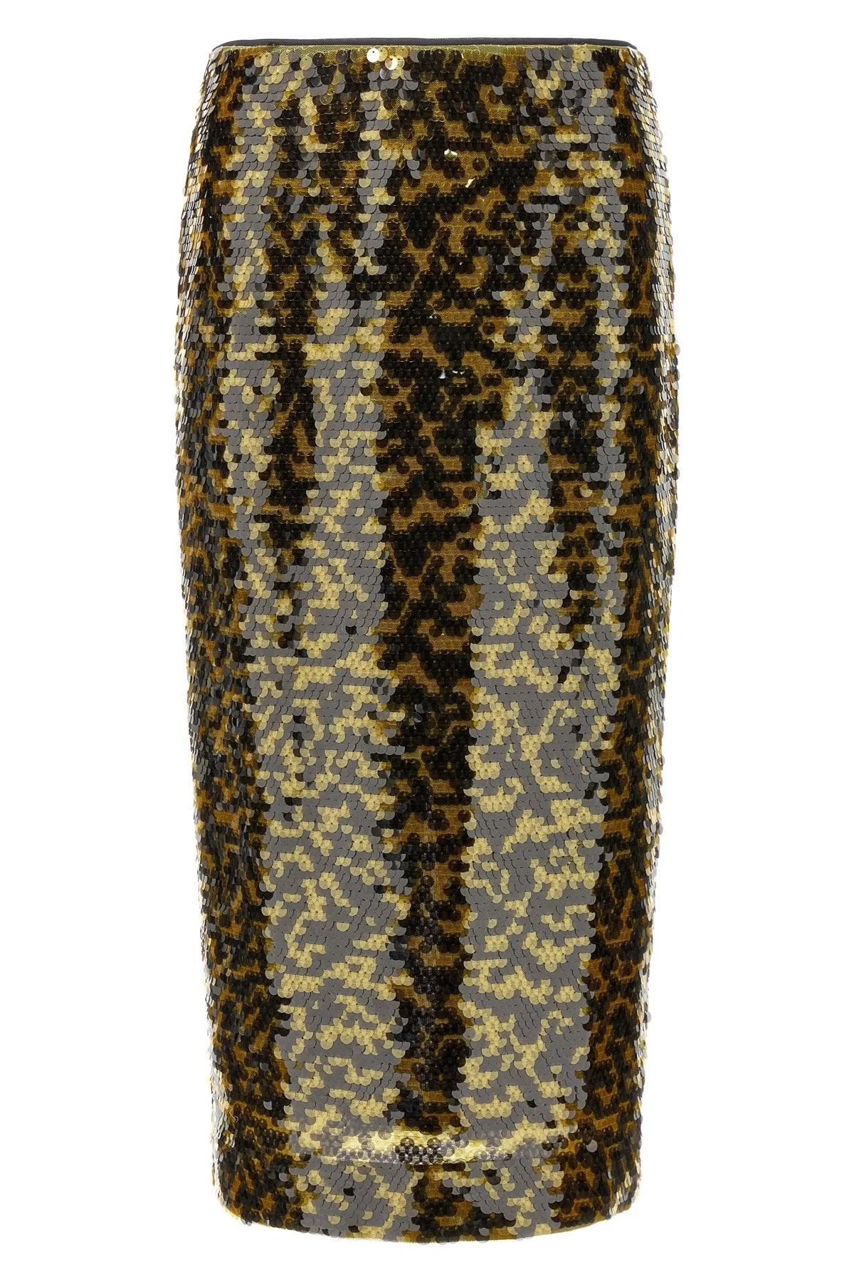 cod. R26R6121SQTRBL Sequin 'Ciara' midi skirt, sheath dress, concealed zip closure at the back, central back split. Color: Yellow Size & Fit: True to size fit Composition: 100% polyester Made in: China