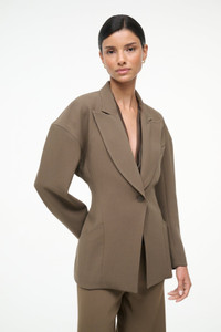 The Cole is a new blazer silhouette, featuring a fitted waist, drop shoulders, and slightly curved sleeves. MORE DETAILS - Self: 68% Polyester, 27% Viscose, 5% Elastane, Lining: 55% Polyester, 45% Viscose - Model is 5'10 and wearing a size 4 - Dry Clean Only