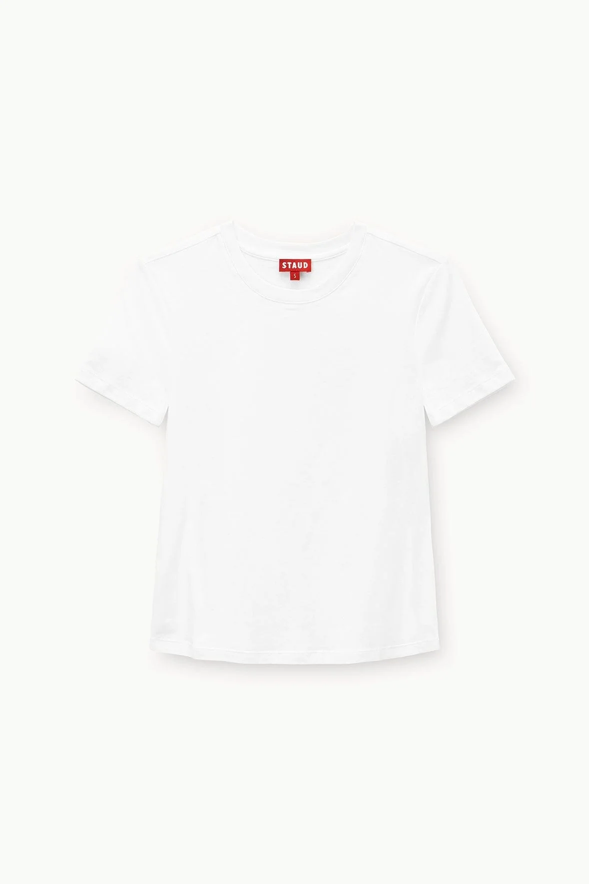 A basic cotton tee with a fitted silhouette. A great layering piece, this tee can be worn with any of our denim for a casual look. MORE DETAILS - 100% Cotton - Model is 5'10" and wearing a size Small - Dry Clean Only