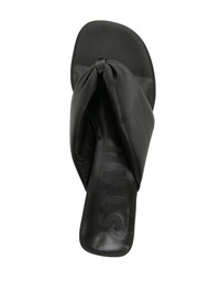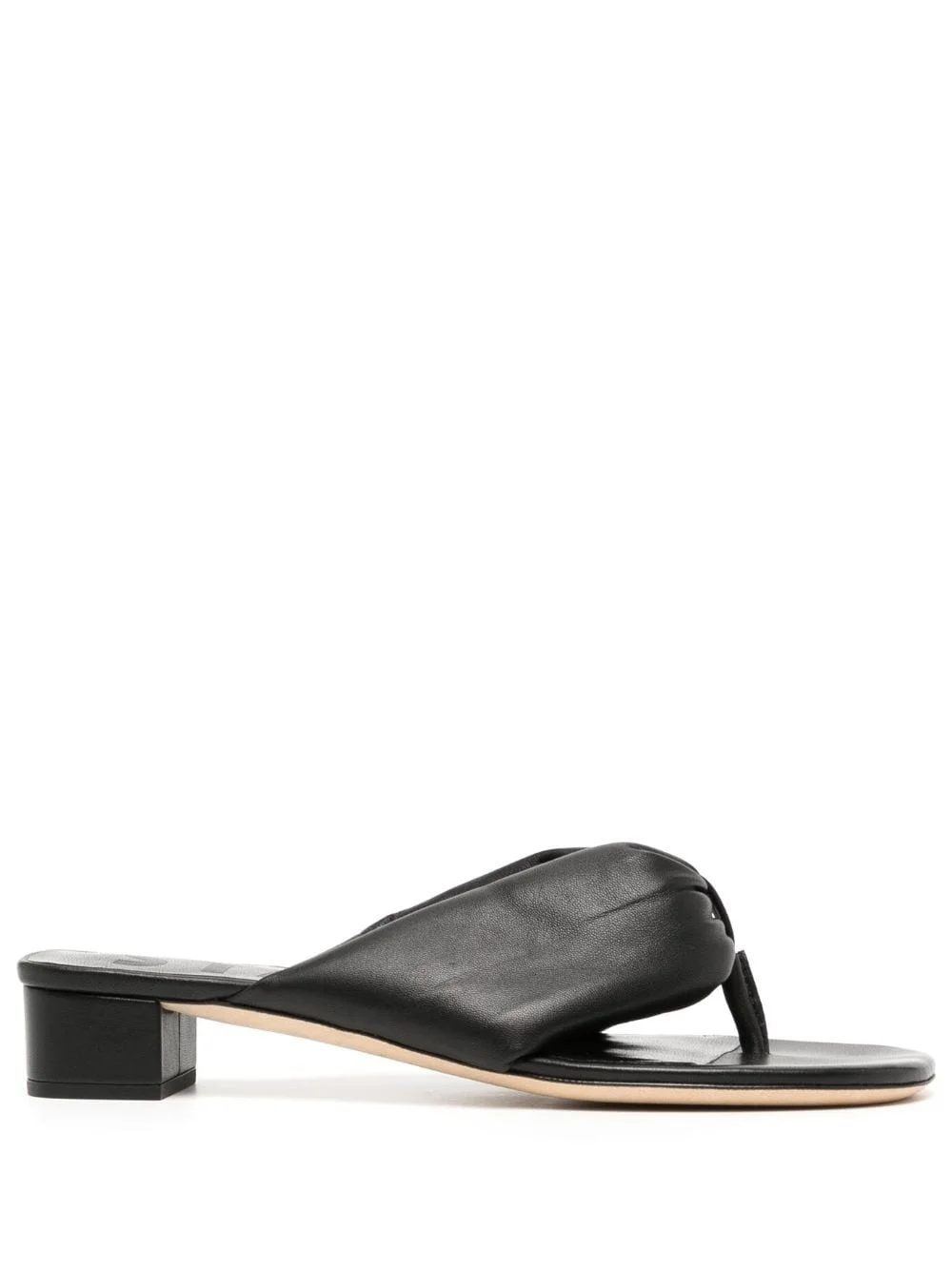Dahlia 25mm leather sandals With a puffy thong upper, these Dahlia sandals by Staud encapsulate the brand's refined yet casual aesthetic. Crafted from leather, the slip-on pair is complete with discreet 25mm block heels. Highlights - Black - Leather - Grained texture - Thong strap - Puff - Open toe - Round toe - Branded footbed - Low block heel Imported Composition Sole: Leather 100% Lining: Leather 100% Outer: Leather 100% SIZE & FIT Measurement HEEL 0.98 in(2.5 cm)