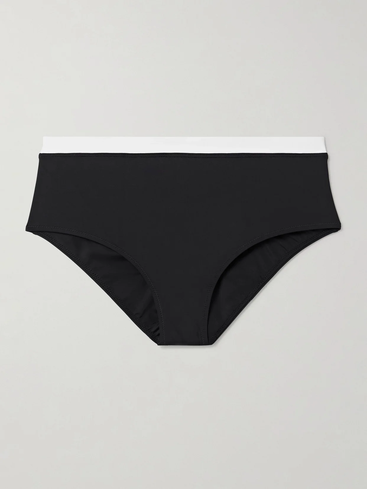 STAUD's 'Devon' bikini briefs are just as versatile as they are classic. They pair perfectly with the matching 'Jo' top from our collection, as well as with solid styles already in your wardrobe. Cut from black stretch fabric, they're traced with white striping along the waist and offer medium coverage.