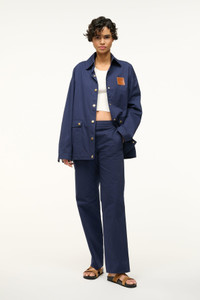 A versatile chino jacket with snap-front closure. The Estereo Jacket offers a relaxed fit, with custom leather logo patch and flap pockets on the side to hold all your essentials. MORE DETAILS - 98% Cotton, 2% Spandex - Model is 5'10 and wearing a size S - Dry Clean Only