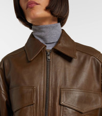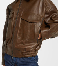 Staud seeks to break through repetition in design with thoughtful styles that are empowering and accessible. The Eugene bomber jacket is made from buttery leather. Product Details - Material: 100% calf leather - Care instructions: dry clean - Made in India - Designer color name: Truffle - Item color: brown - Lining: 100% polyester - Closure: zipped front - Pockets: flap pockets, side slit pockets, zipped pockets, internal pocket - Cuff: buttoned - Elasticated waistband - Item number: P01098526 Size & Fit - True to size - Dropped shoulders - Designed for a loose fit - Elasticated hem - Non-stretchy fabric - Falls to the hip - The model seen in the picture is 178cm-5'10" and wearing a size XS