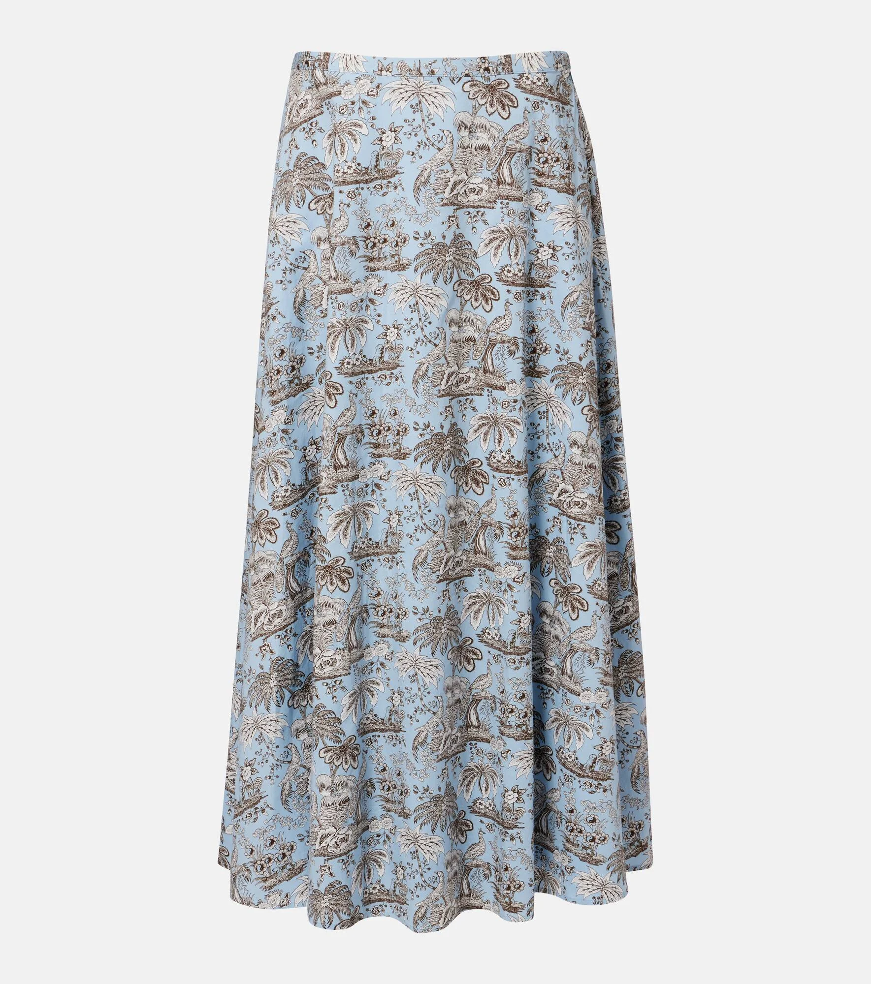 Staud seeks to break through repetition in design with thoughtful styles that are empowering and accessible. This cotton midi skirt has an A-line silhouette and an all-over floral print. Product Details - Material: 98% cotton, 2% elastane - Care instructions: machine wash cold - Made in Vietnam - Color: blue - Designer color name: Sky Toile - Lining: 100% cotton - Closure: concealed zipped side - Pockets: side slit pockets - Elasticated waistband - Item number: P01115616 Size & Fit - True to size - Non-stretchy fabric - The model seen in the picture is 178cm-5'10" and wearing a size XS