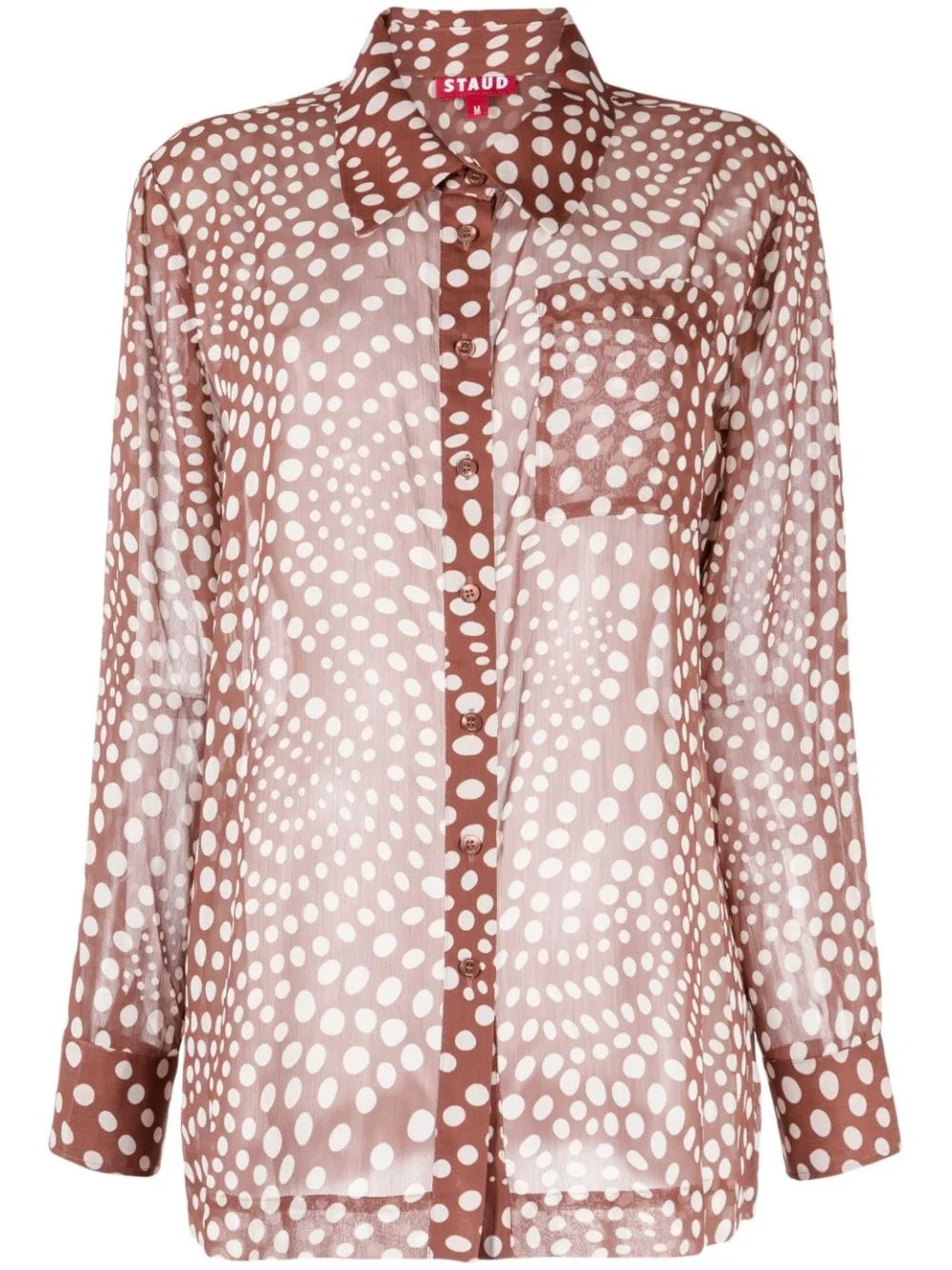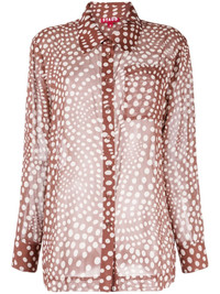 graphic-print semi-sheer shirt Highlights - Chocolate brown - All-over graphic print - Semi-sheer construction - Classic collar - Chest patch pocket - Front button fastening - Long sleeves - Straight hem Imported Composition Polyester 100% SIZE & FIT Model measurements Height 5 ft 10 in(1.77 m) Bust/Chest 31.49 in(80 cm) Hips 35.43 in(90 cm) Waist 25.19 in(64 cm) FittingInformation Designed to be unstructured, offering a loose fit throughout Made from a lightweight non-stretch fabric This piece fits true to size – take your usual size Washing instructions Machine Wash
