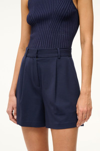 The Heather Short is a new addition to our Essentials collection for Summer; the perfect short in our soft suiting fabrication. This style is high waisted and features front pleats, classic belt loops, and pocket detailing. MORE DETAILS - 63% Polyester, 33% Rayon, 4% Spandex - Model is 5'10 and wearing a size 4 - Dry Clean Only